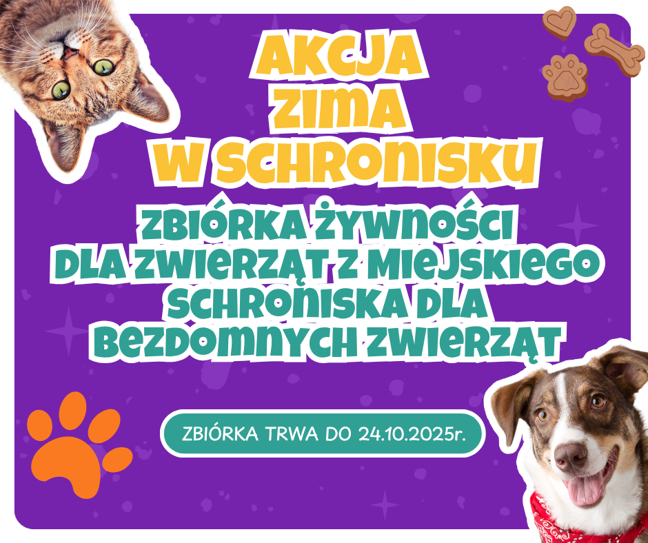 Nasze przedszkole bierze udział w kolejnej zbiórce rzeczy niezbędnych do przetrwania zimy przez podopiecznych Miejskiego Schroniska dla Bezdomnych Zwierząt w Bielsku-Białej. Chodzi o rzeczy, które pomogą im przetrwać zimę i zapewnić komfort. Zbiórka trwa do 24.10.2025r. Rzeczy można zostawiać w koszu w korytarzu naszego przedszkola.