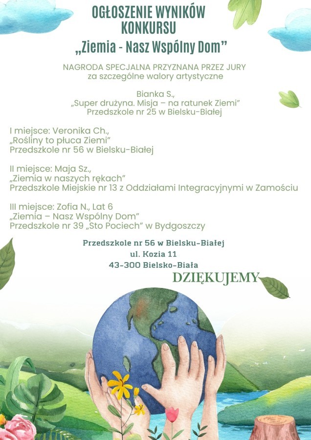 Wyniki Ogólnopolskiego Konkursu "Ziemia - Nasz Wspólny Dom"