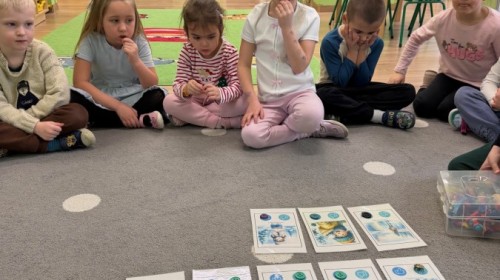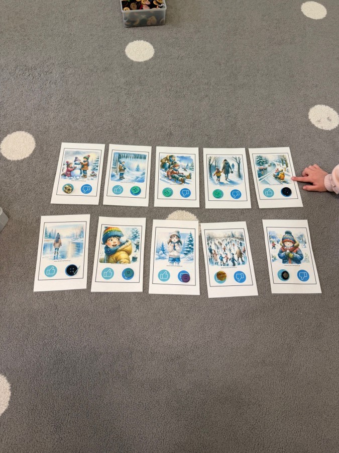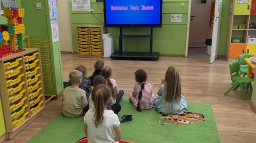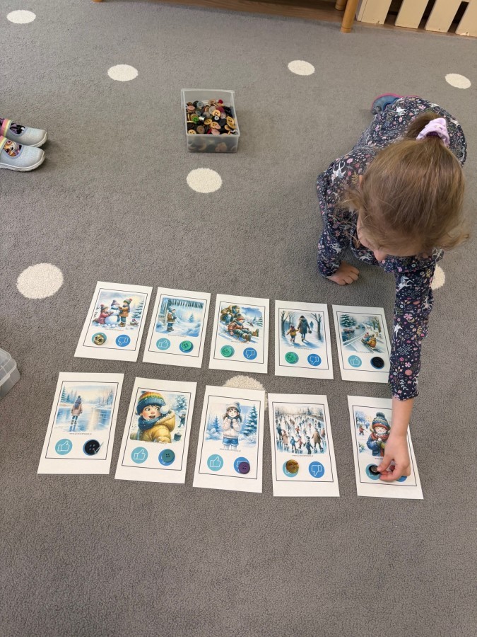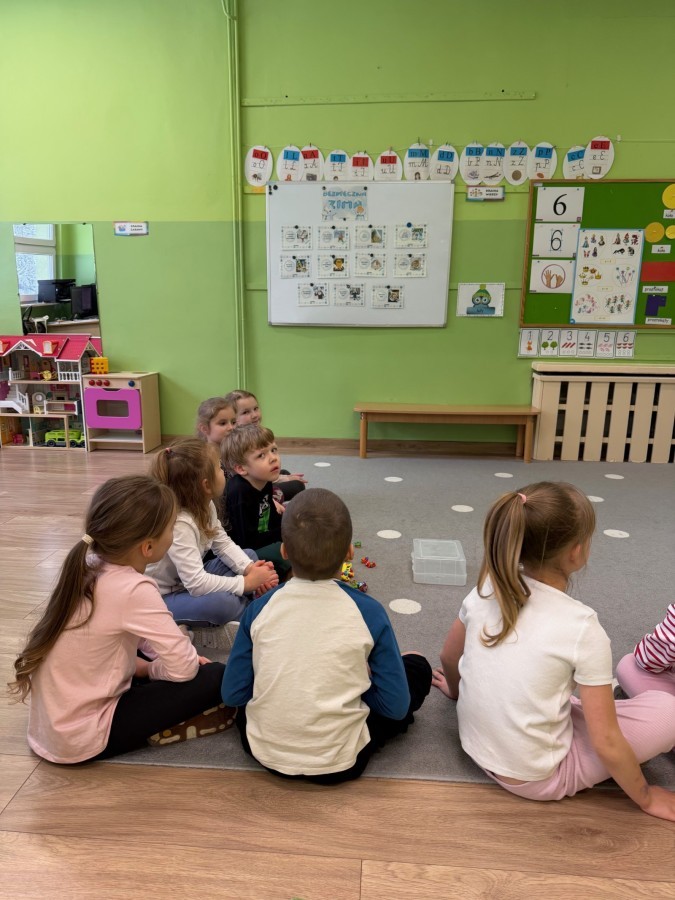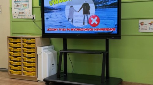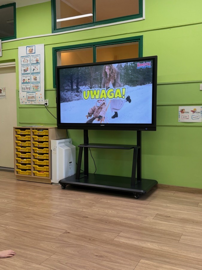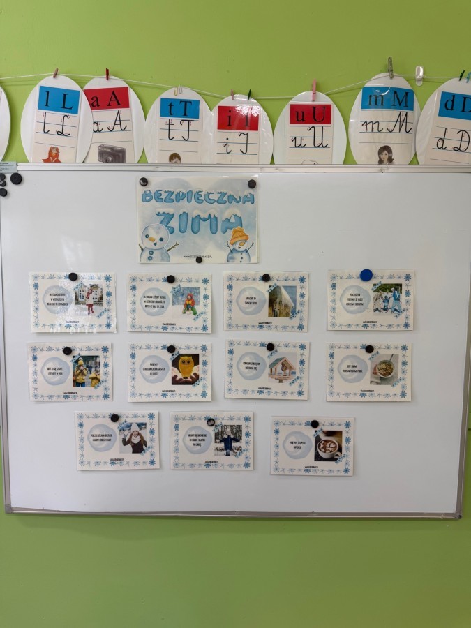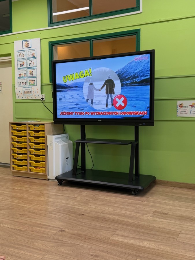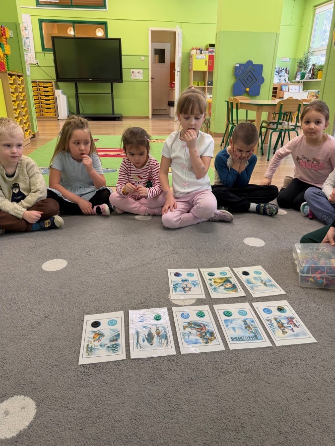 Dzieci oglądały film edukacyjny, a także aktywnie uczestniczyły w rozmowach na temat bezpiecznych zabaw na śniegu i lodzie, właściwego ubioru zimą, ostrożności w kontaktach z nieznajomymi oraz zasad poruszania się po drodze. Szczególną uwagę poświęciliśmy również utrwaleniu numerów alarmowych oraz sytuacji, w których należy z nich korzystać.