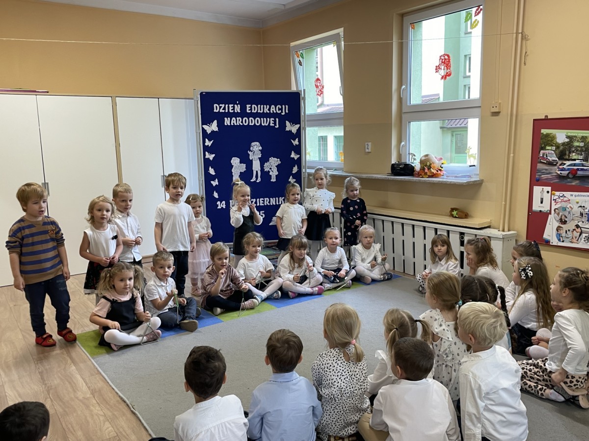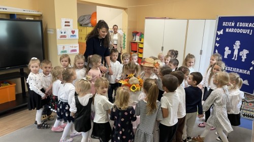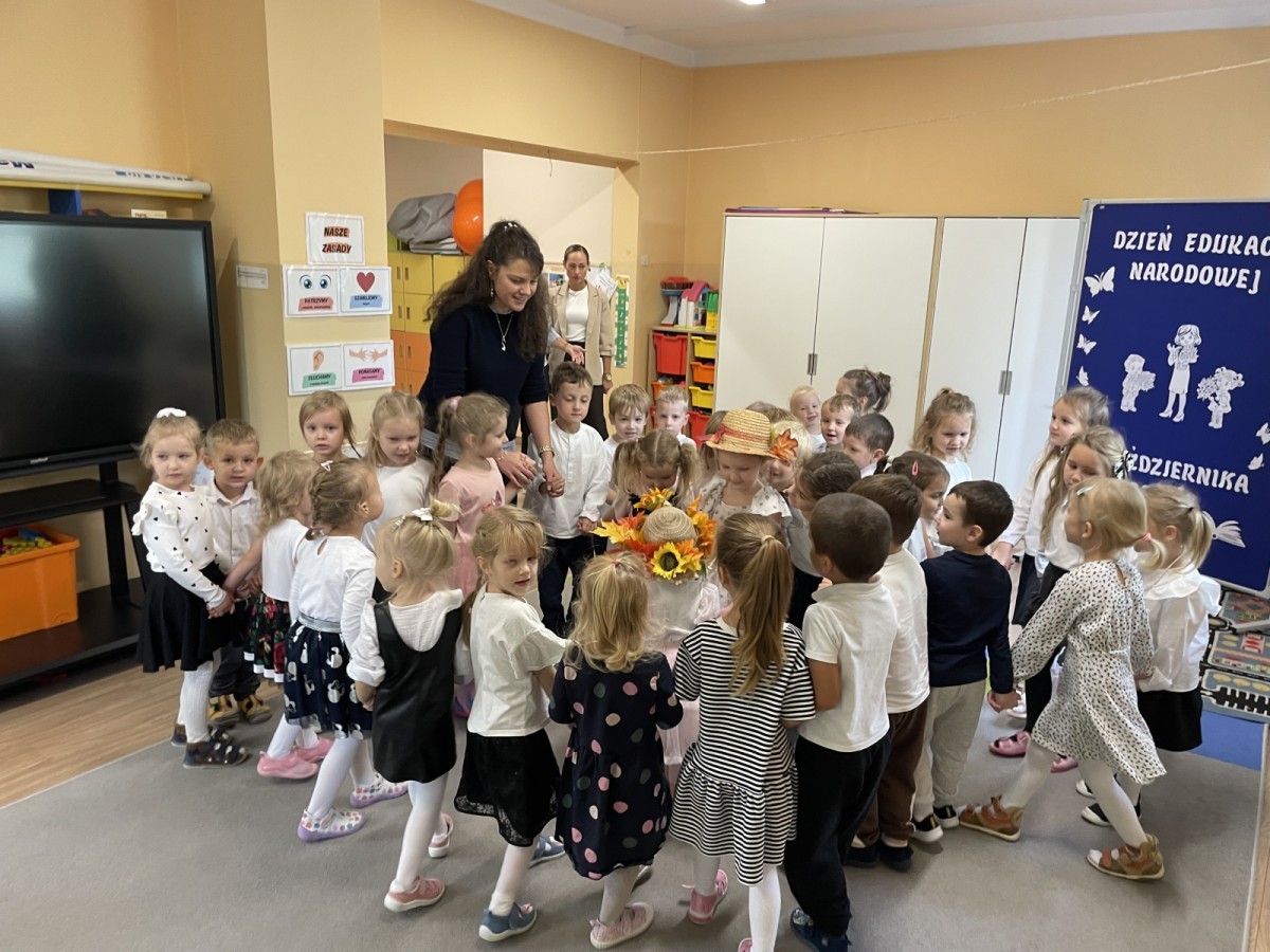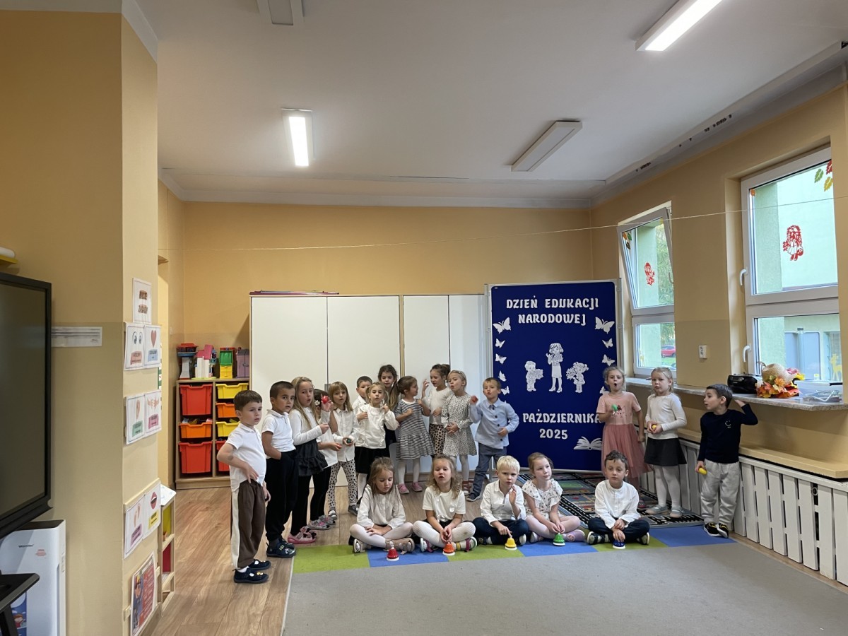 14 października 2025r. w naszym przedszkolu obchodziliśmy uroczystość z okazji Dnia Komisji Edukacji Narodowej. Obie grupy przedszkolne spotkały się wspólnie, aby uczcić to wyjątkowe święto. Dzieci zaprezentowały swoje programy artystyczne, a następnie z ogromnym zaangażowaniem wręczyły przygotowane laurki Pani Dyrektor, nauczycielom i pracownikom przedszkola jako wyraz wdzięczności i sympatii.