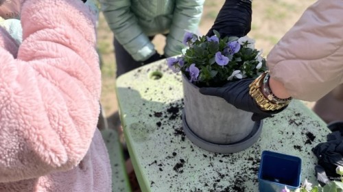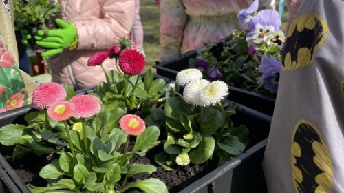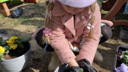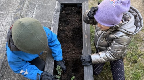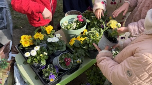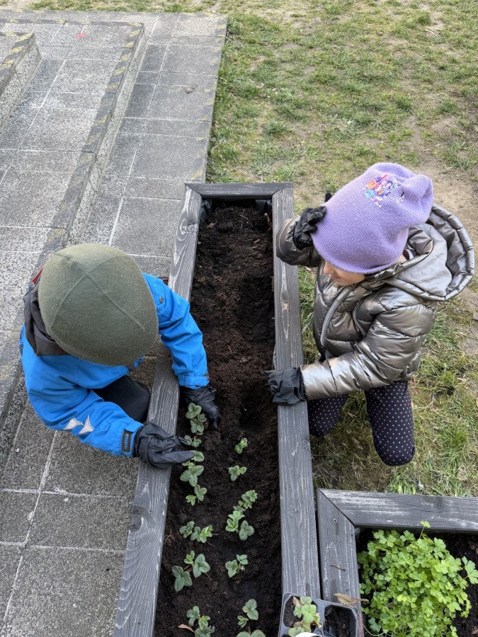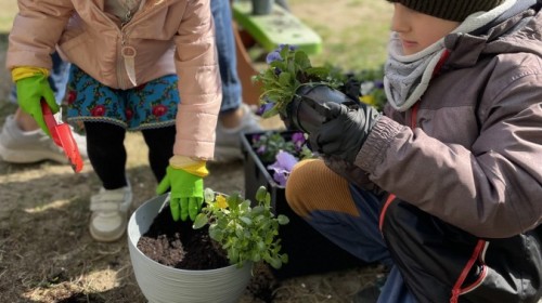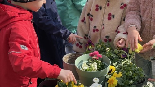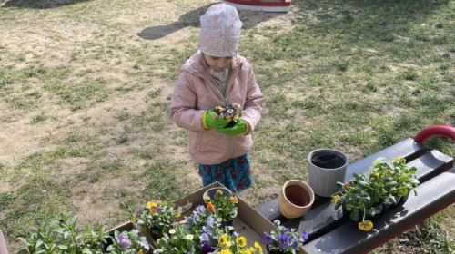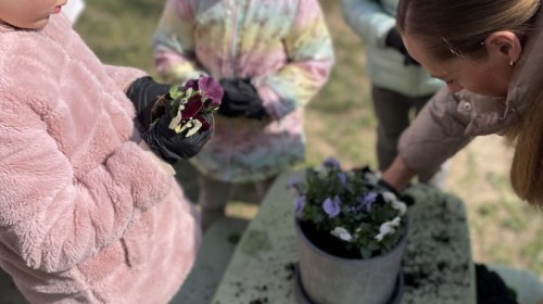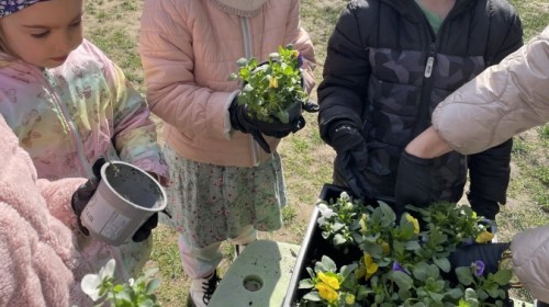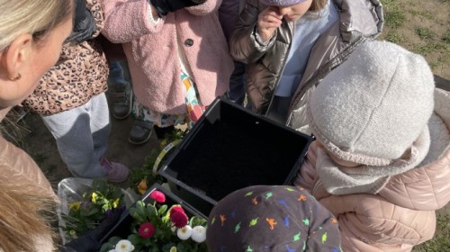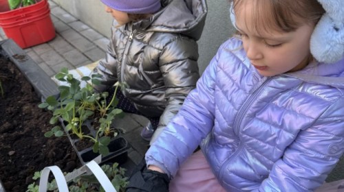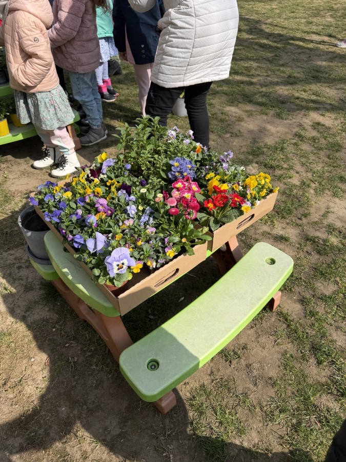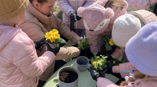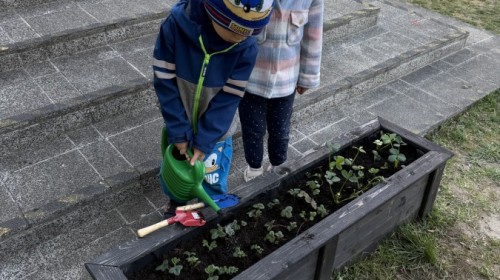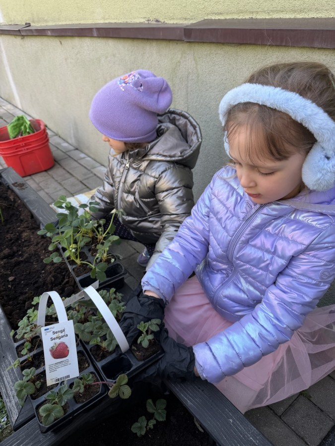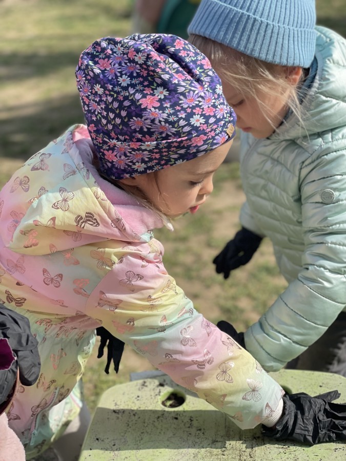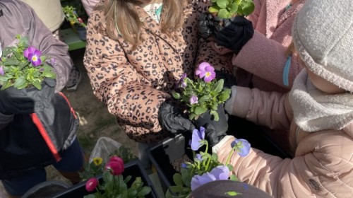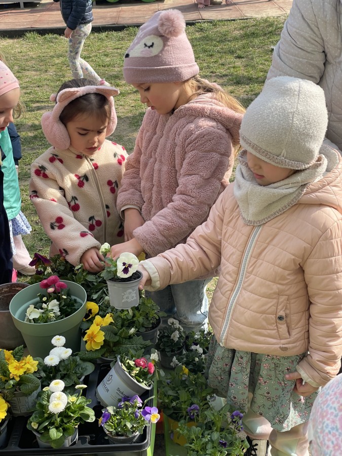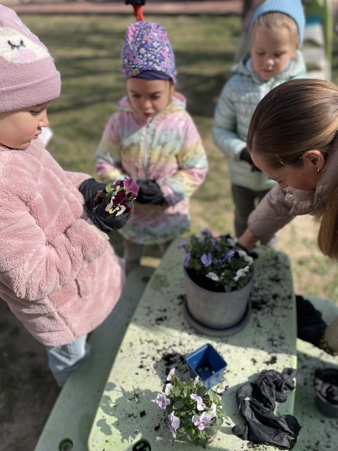 Następnie dzieci przeszły do działań praktycznych. Przedszkolaki z wielkim zaangażowaniem sadziły nowe rośliny: bratki, pierwiosnki, stokrotki ogrodowe, hiacynty, truskawki oraz zioła do doniczek, które teraz zdobią wejście do przedszkola oraz przedszkolny ogródek. Była to świetna okazja do nauki poprzez działanie - przedszkolaki mogły samodzielnie posadzić rośliny i dowiedzieć się, jak należy o nie dbać. Serdecznie dziękujemy Rodzicom za zaangażowanie i przyniesienie potrzebnych rzeczy do sadzenia podczas naszego wiosennego Eko-wydarzenia. Dzięki Państwa wsparciu dzieci mogły z radością uczestniczyć w tej wyjątkowej, zielonej przygodzie i uczyć się troski o naturę.