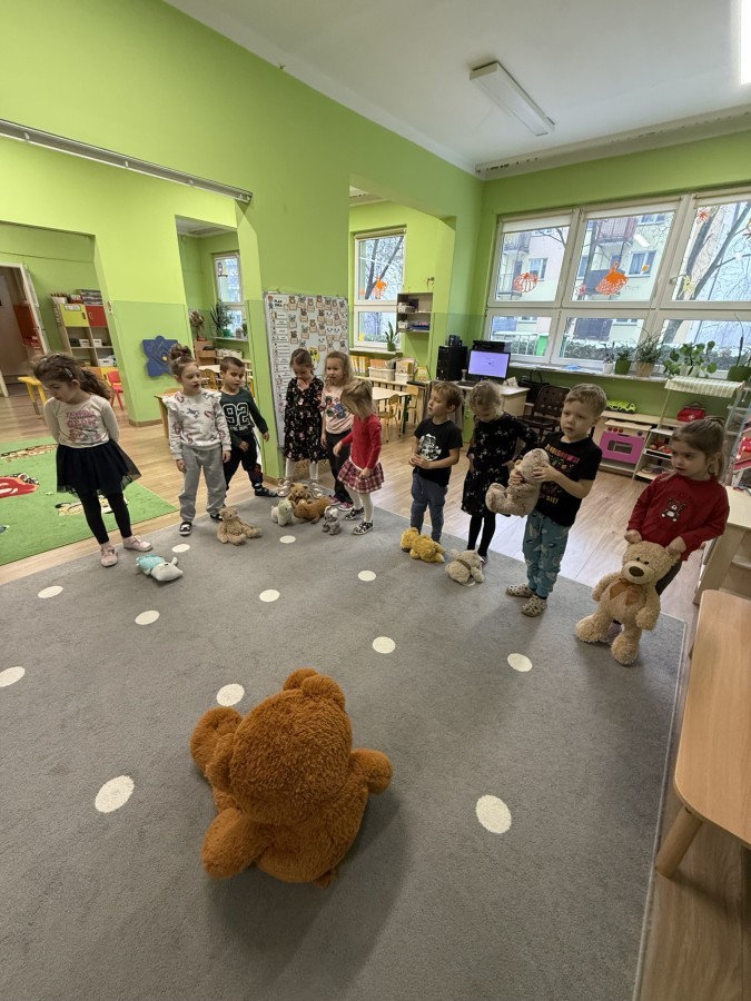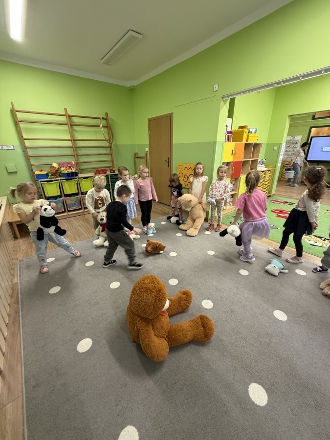 Na dzieci czekało wiele atrakcji – przedszkolaki poznawały różne misie znane z bajek i filmów, tańczyły, śpiewały piosenki, brały udział w zabawach ruchowych i matematycznych oraz tworzyły piękne prace plastyczne, pokazując swoją kreatywność i zaangażowanie. Wszystkie aktywności nawiązywały do pluszowego misia, dzięki czemu dzieci mogły w pełni poczuć atmosferę tego dnia.