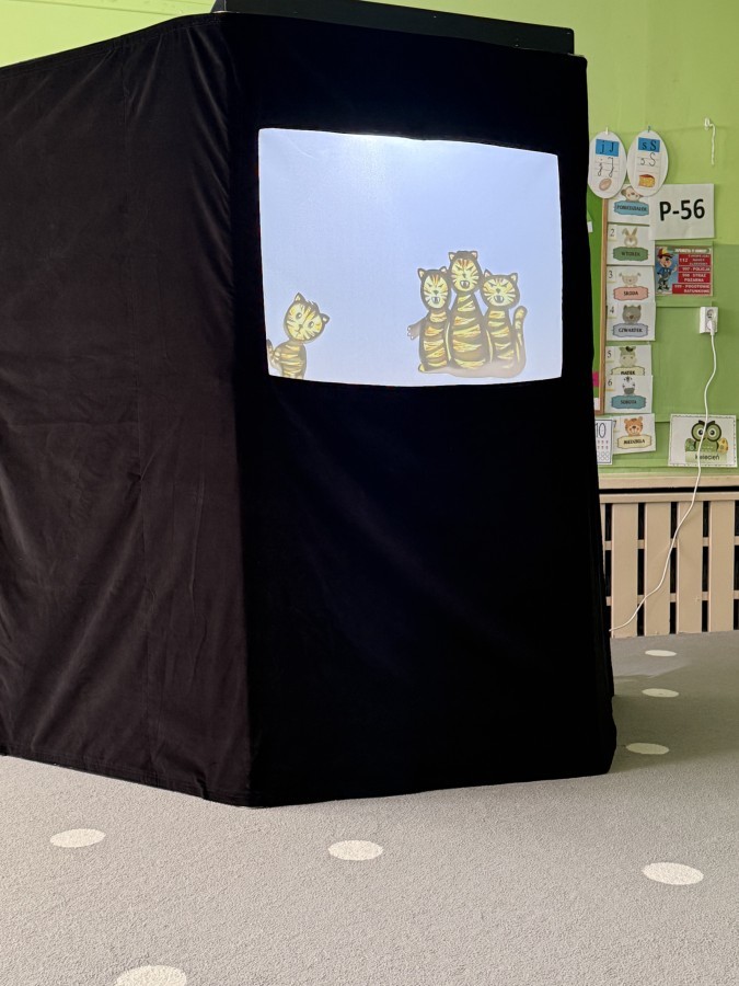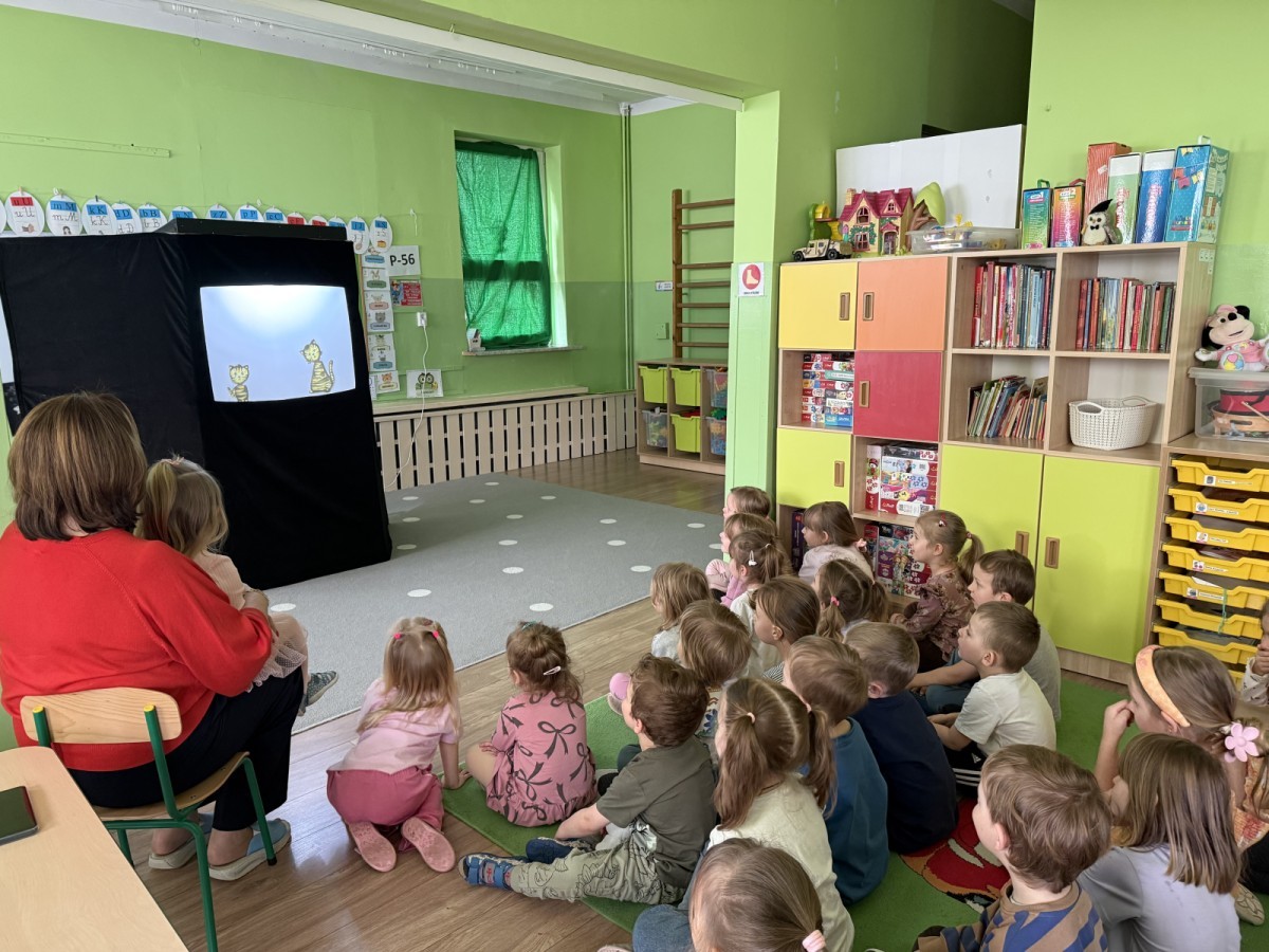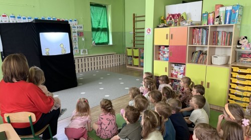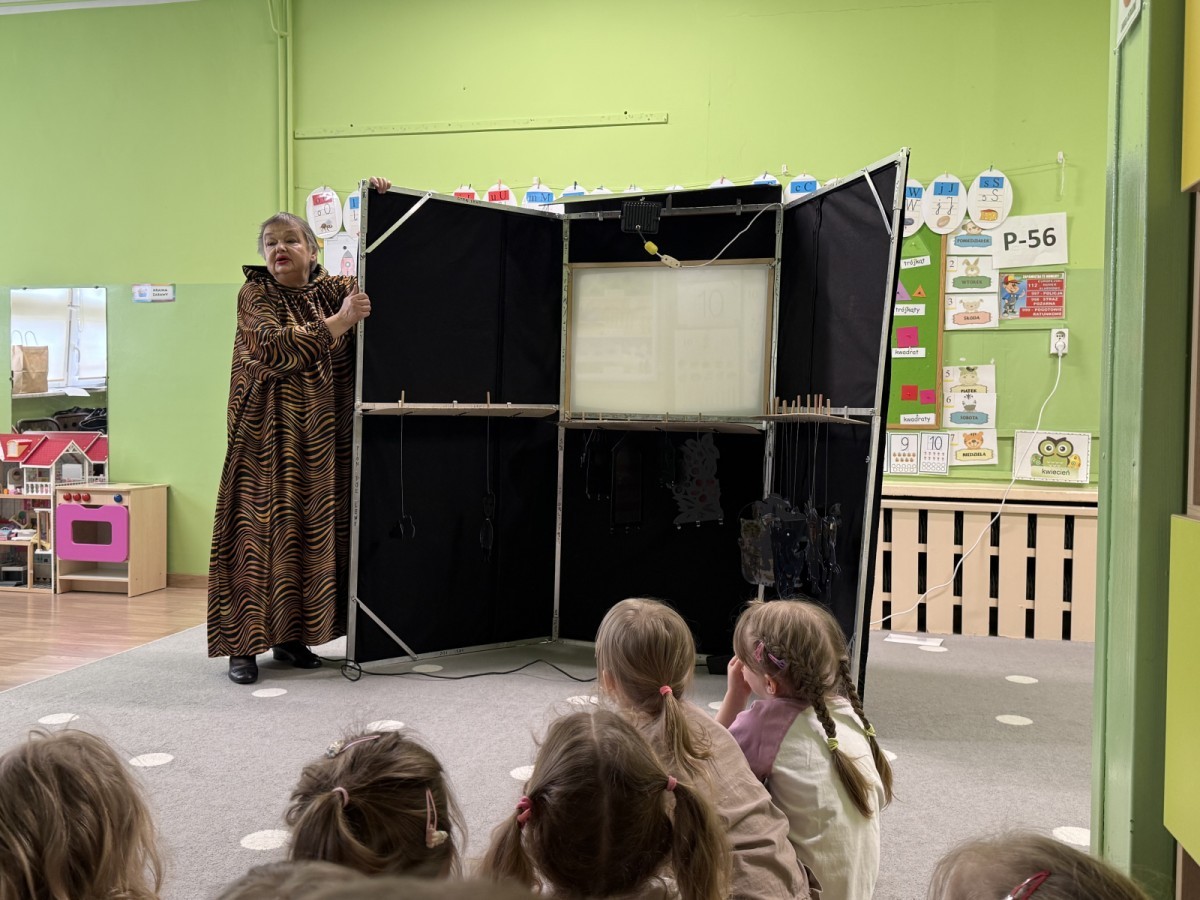 Dzięki połączeniu światła, cieni i dźwięku powstała niezwykła, magiczna atmosfera, która od pierwszych chwil przyciągnęła uwagę dzieci. Przedszkolaki z dużym zainteresowaniem śledziły losy bohatera, reagując spontanicznie i z entuzjazmem na kolejne wydarzenia.
