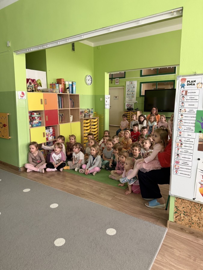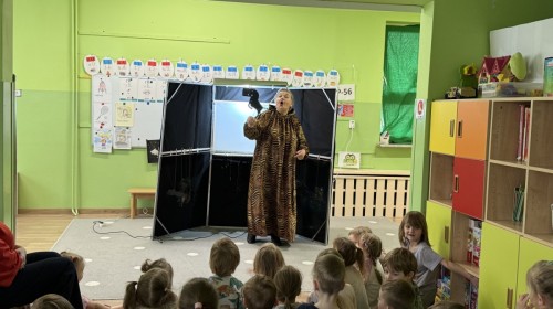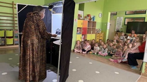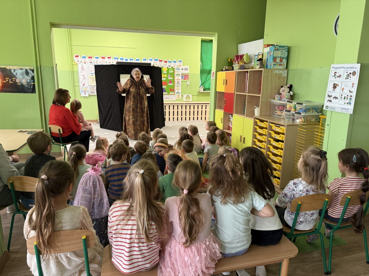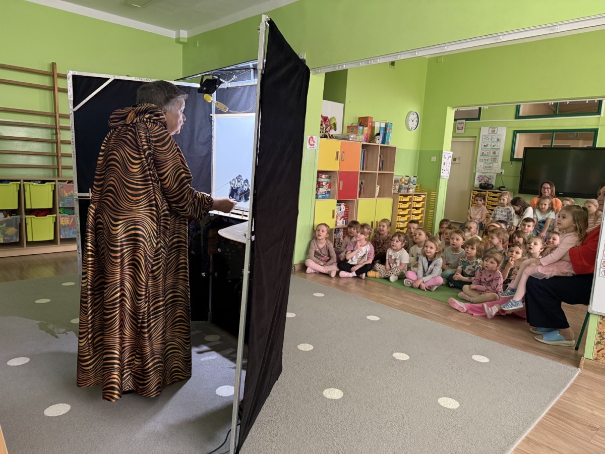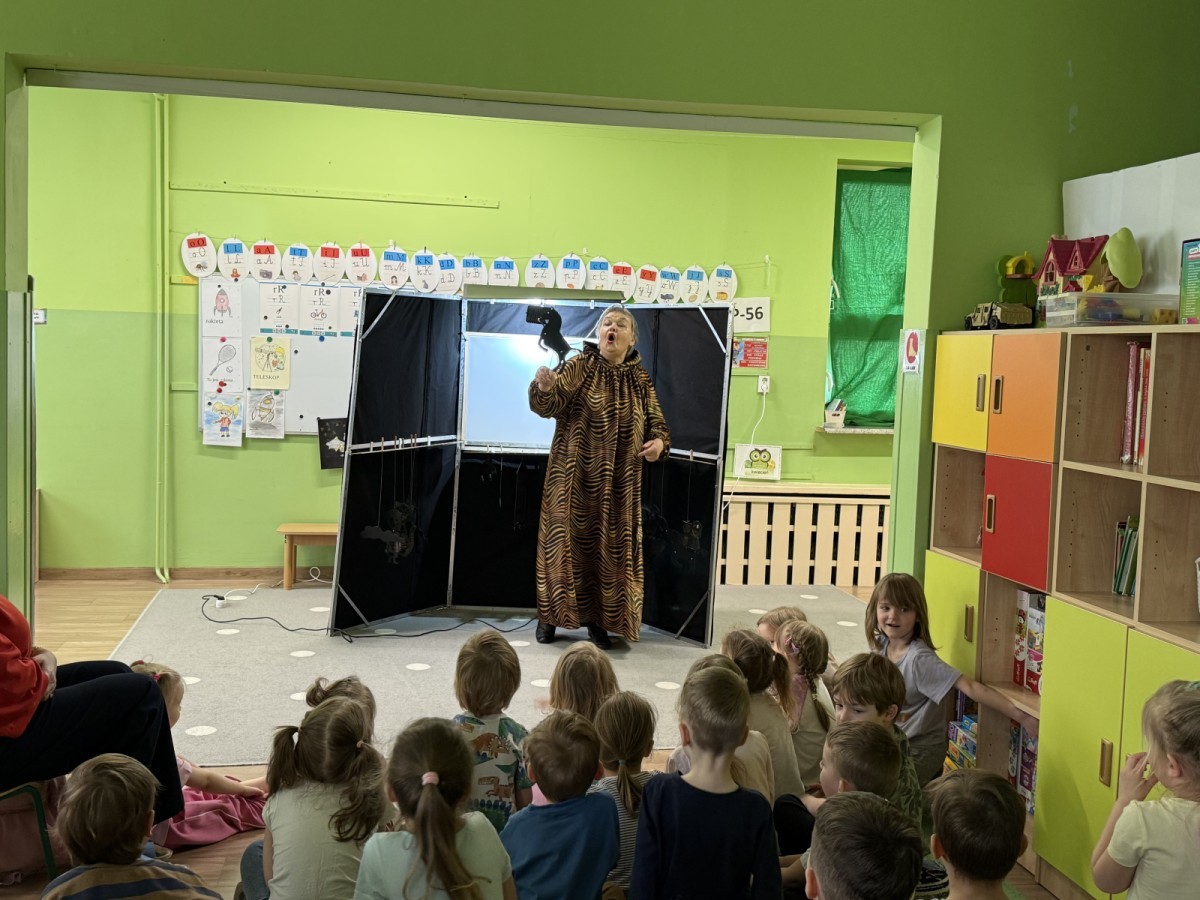 14 kwietnia 2026 roku w naszym przedszkolu gościła Pani Krystyna Popławska z Teatru „Ptak.” Zaprezentowała dzieciom wyjątkowy spektakl teatru cieni pt. „Tygrys Pietrek”, który opowiadał historię małego tygryska uczącego się odwagi i radzenia sobie z własnymi obawami.