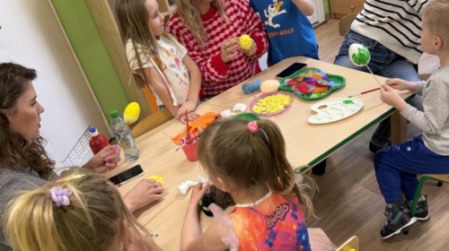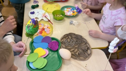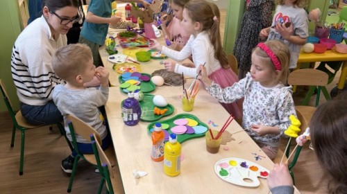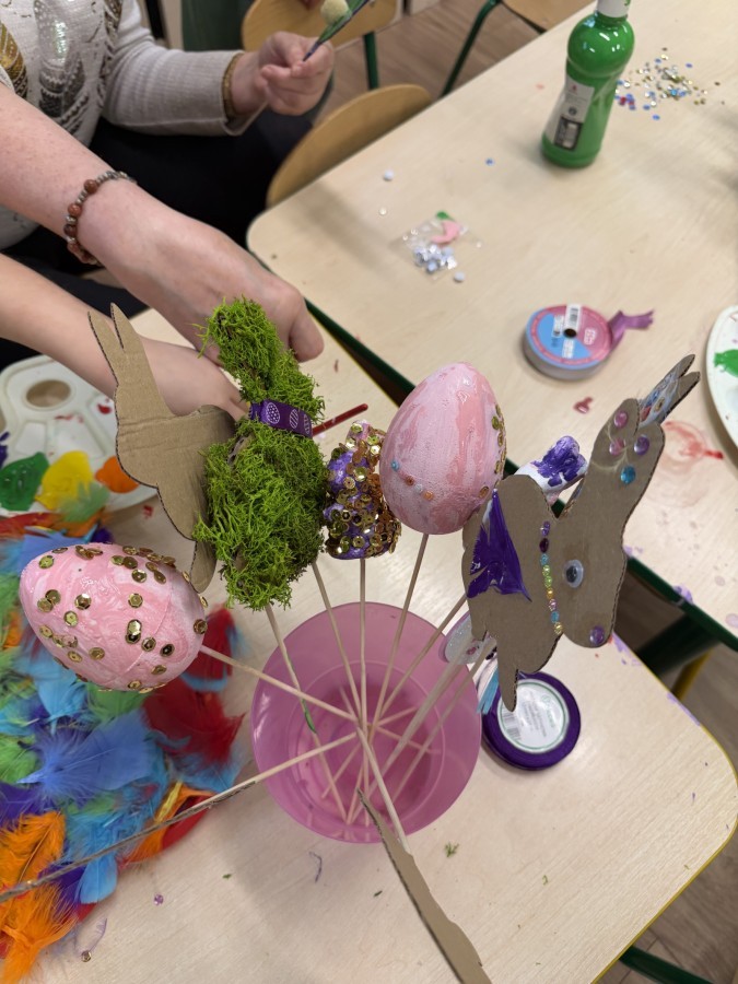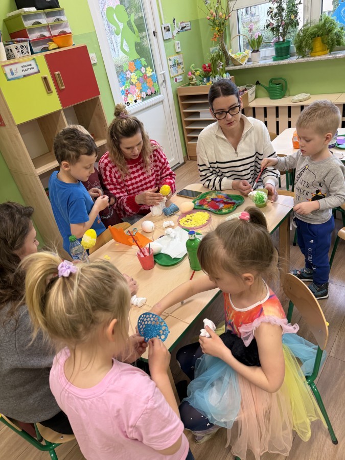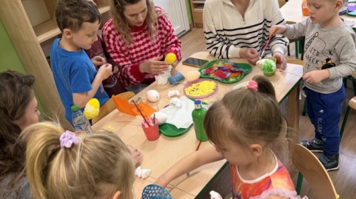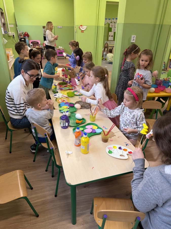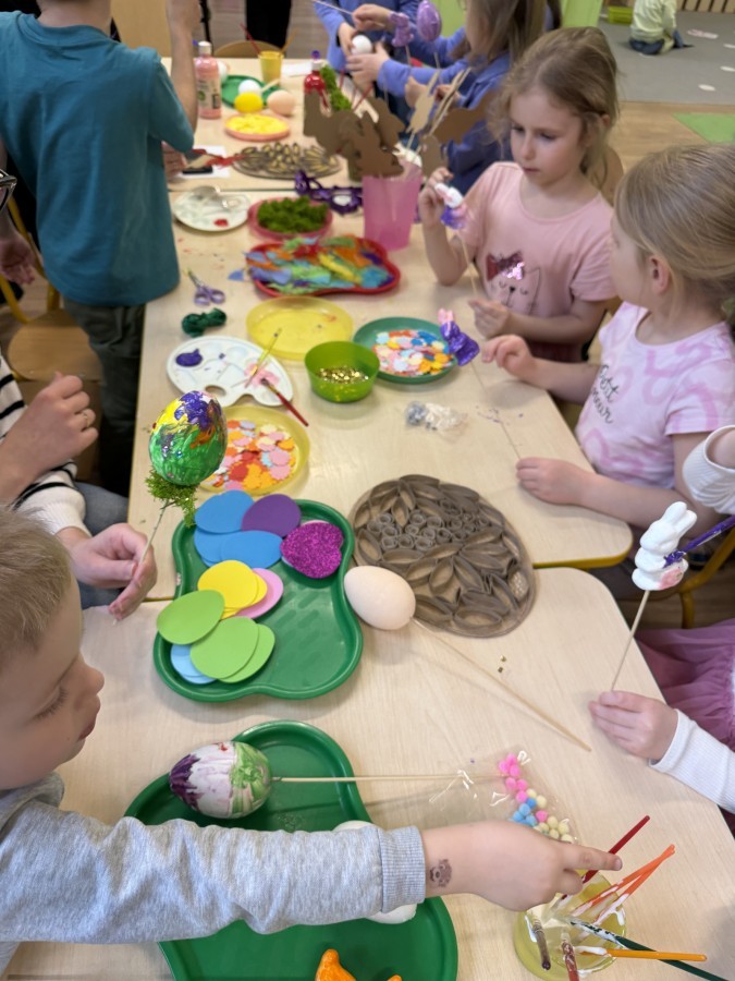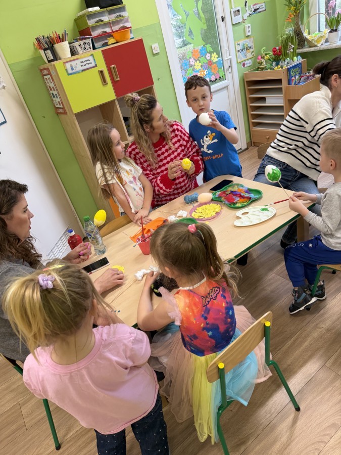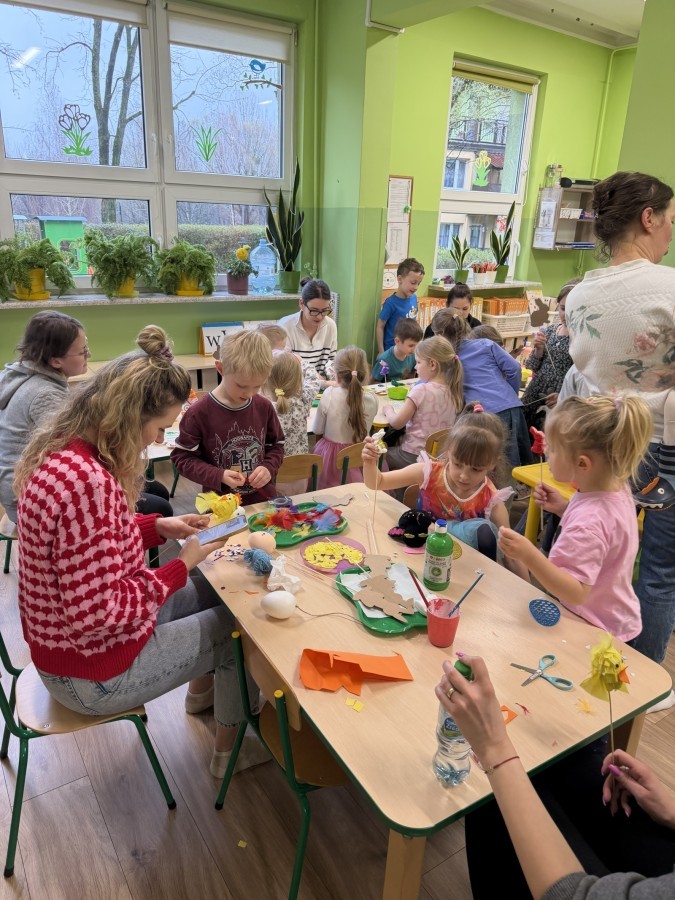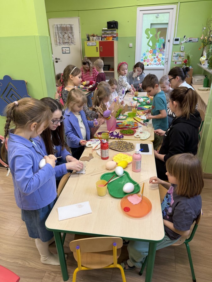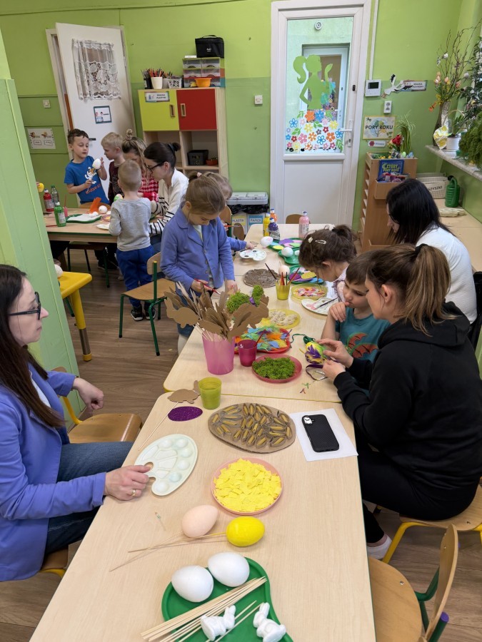 W naszym przedszkolu odbyły się radosne warsztaty wielkanocne, które zgromadziły dzieci wraz z rodzicami przy wspólnym, twórczym stole. Był to czas pełen uśmiechów, kolorów i inspiracji, podczas którego uczestnicy tworzyli własnoręczne ozdoby świąteczne – od styropianowych pisanek po oryginalne dekoracje wielkanocne.