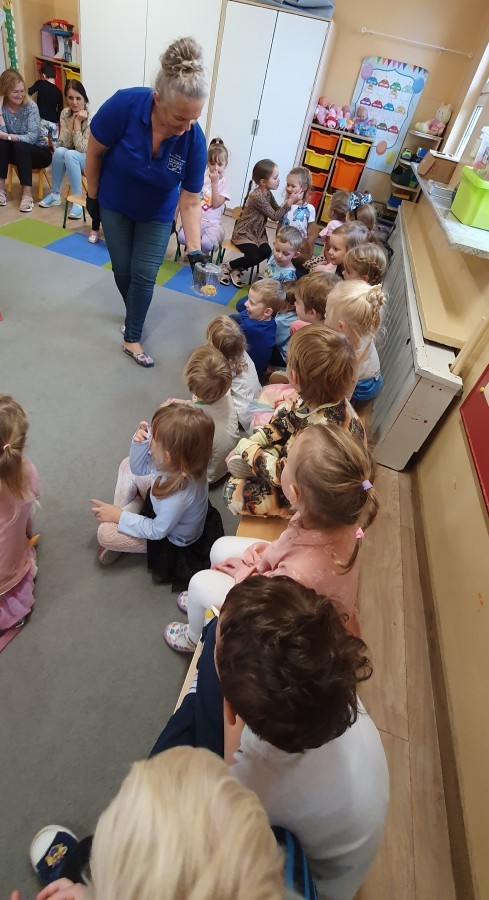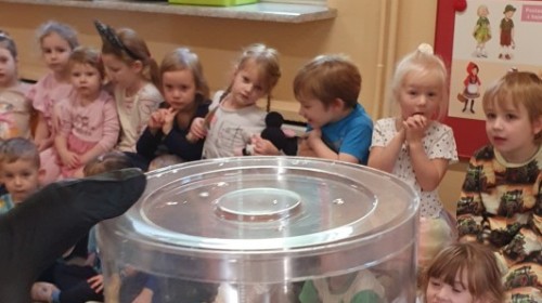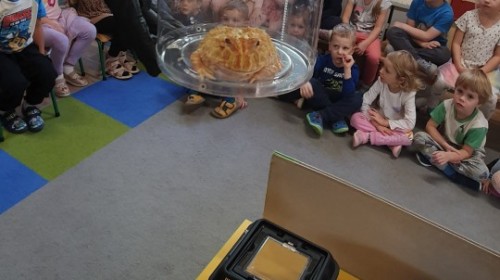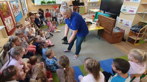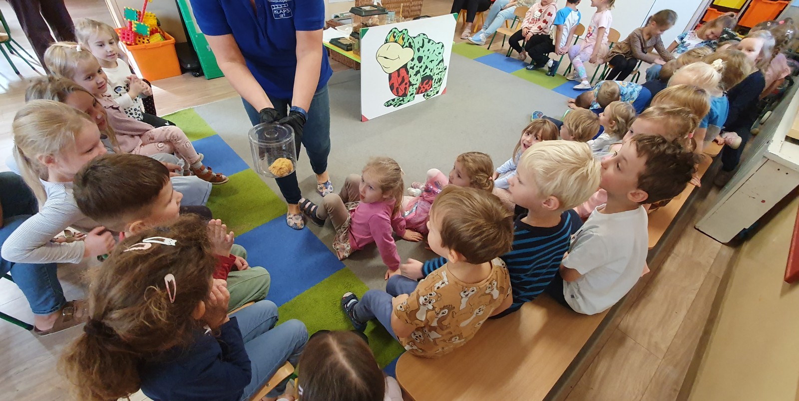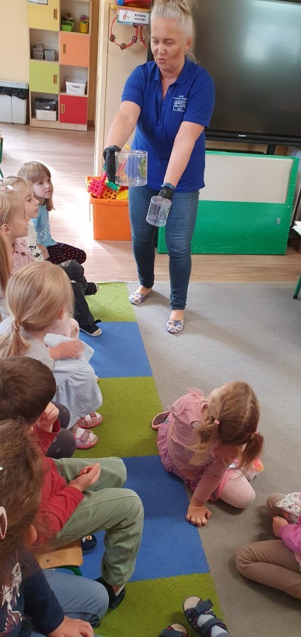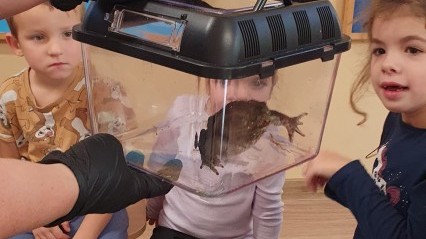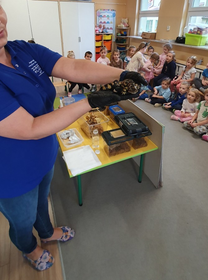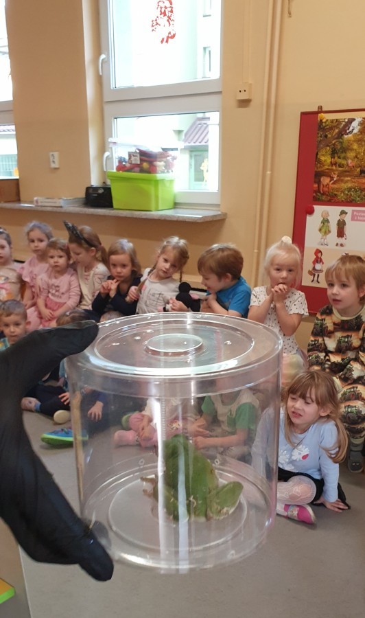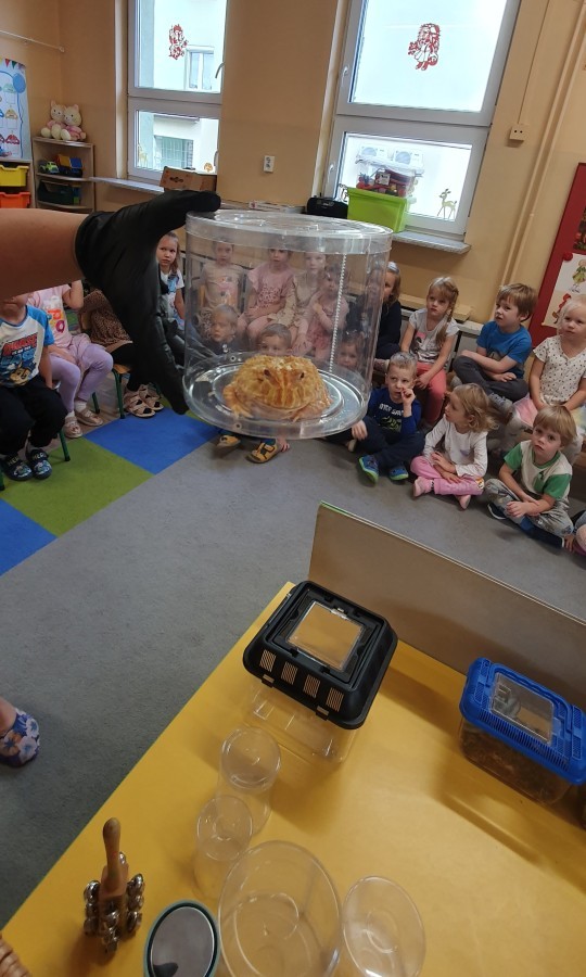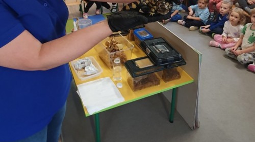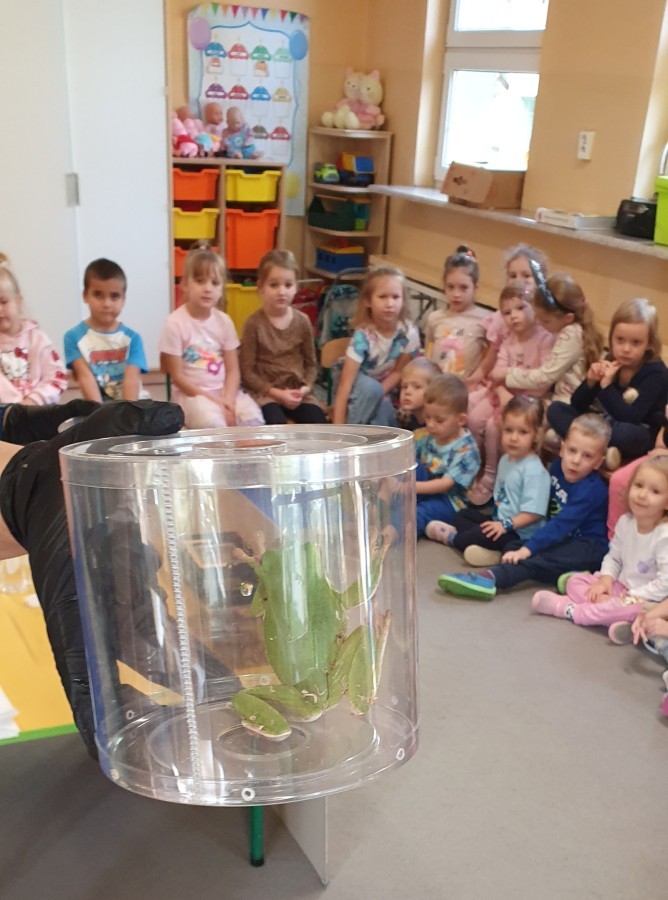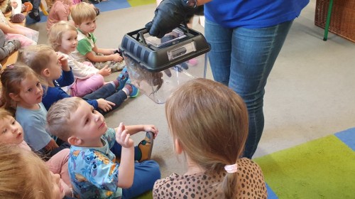 Dzieci były zachwycone możliwością bezpośredniego kontaktu z żywymi okazami i z ogromnym zainteresowaniem słuchały ciekawostek o ich budowie i trybie życia. Spotkanie było nie tylko edukacyjne, ale także inspirujące – rozbudziło w naszych przedszkolakach ciekawość świata przyrody i chęć dalszego odkrywania jego tajemnic.