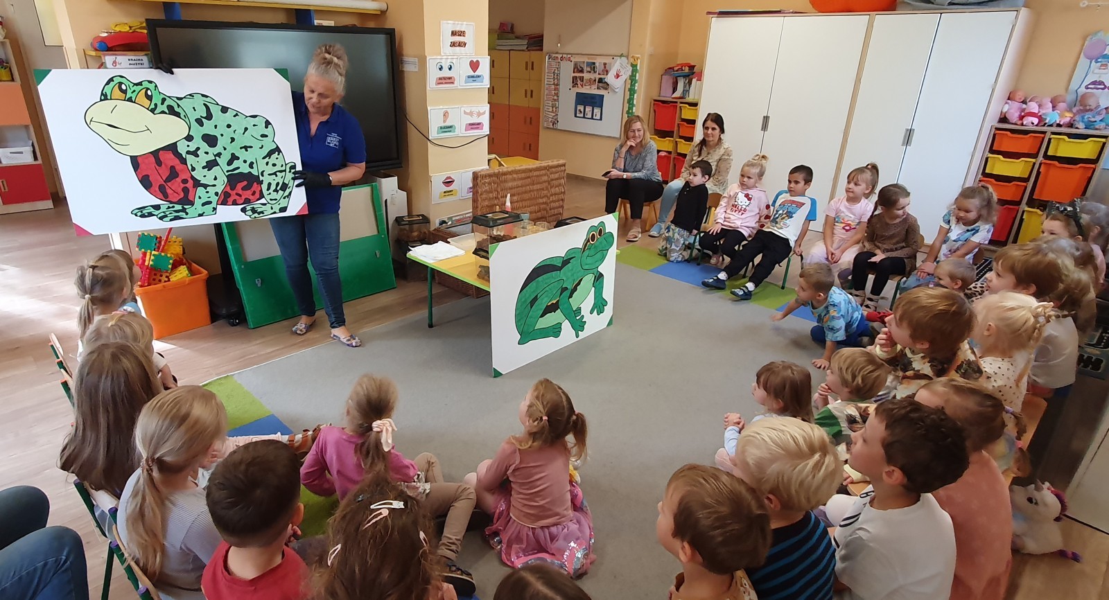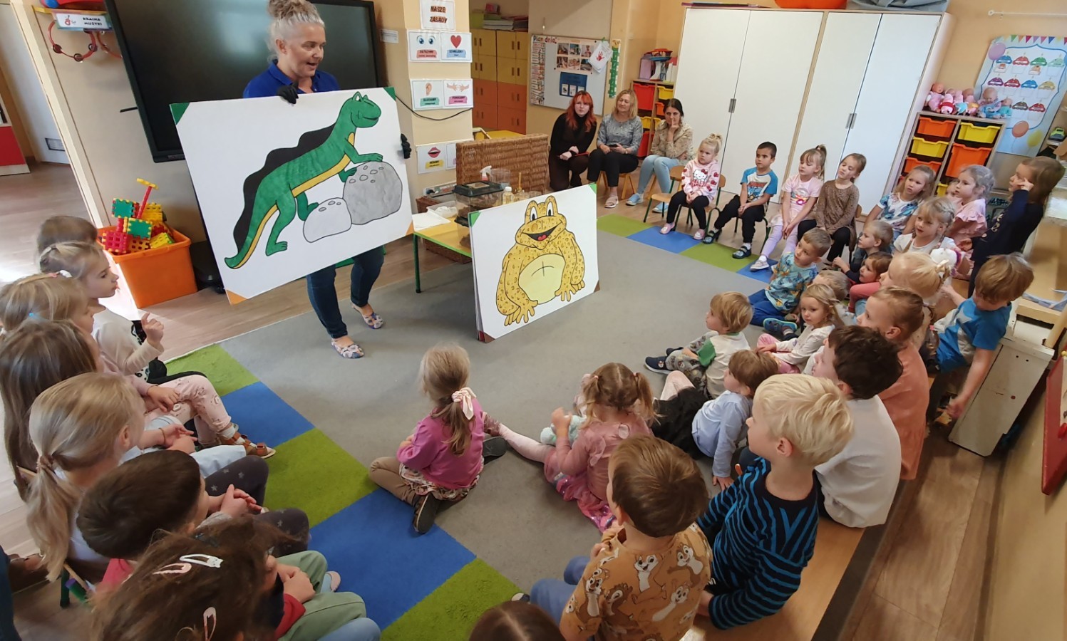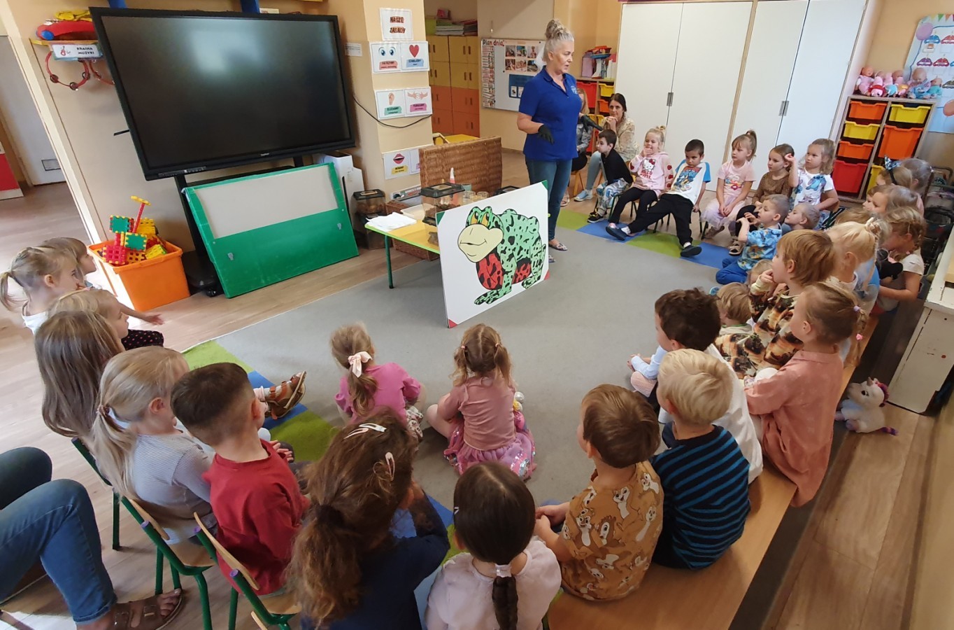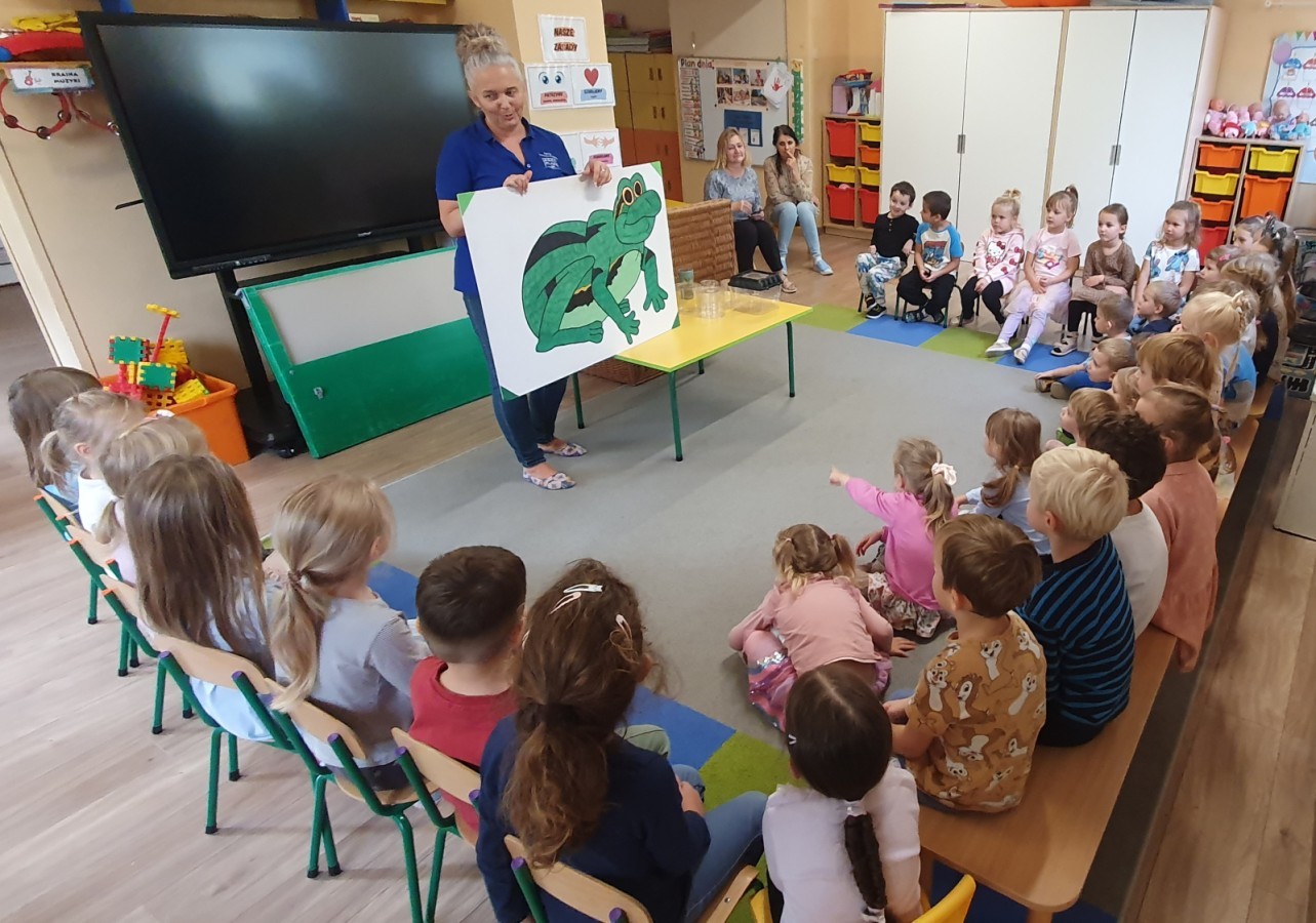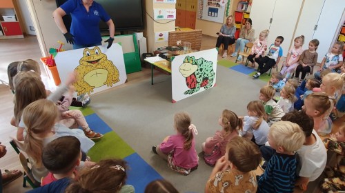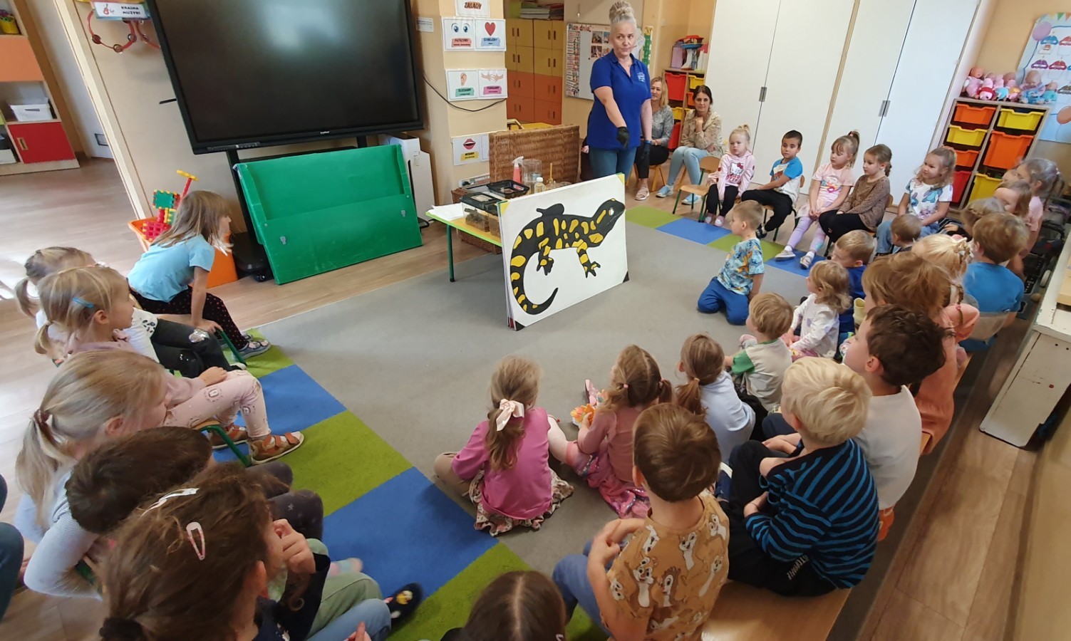 We wtorek 28 października 2025 roku nasze przedszkole odwiedziła Agencja Impresaryjno-Artystyczna Klaps Art z Krakowa, która przygotowała dla dzieci niezwykłe warsztaty przyrodnicze. Tematem spotkania były płazy – fascynujące zwierzęta, które na co dzień trudno zobaczyć z bliska.